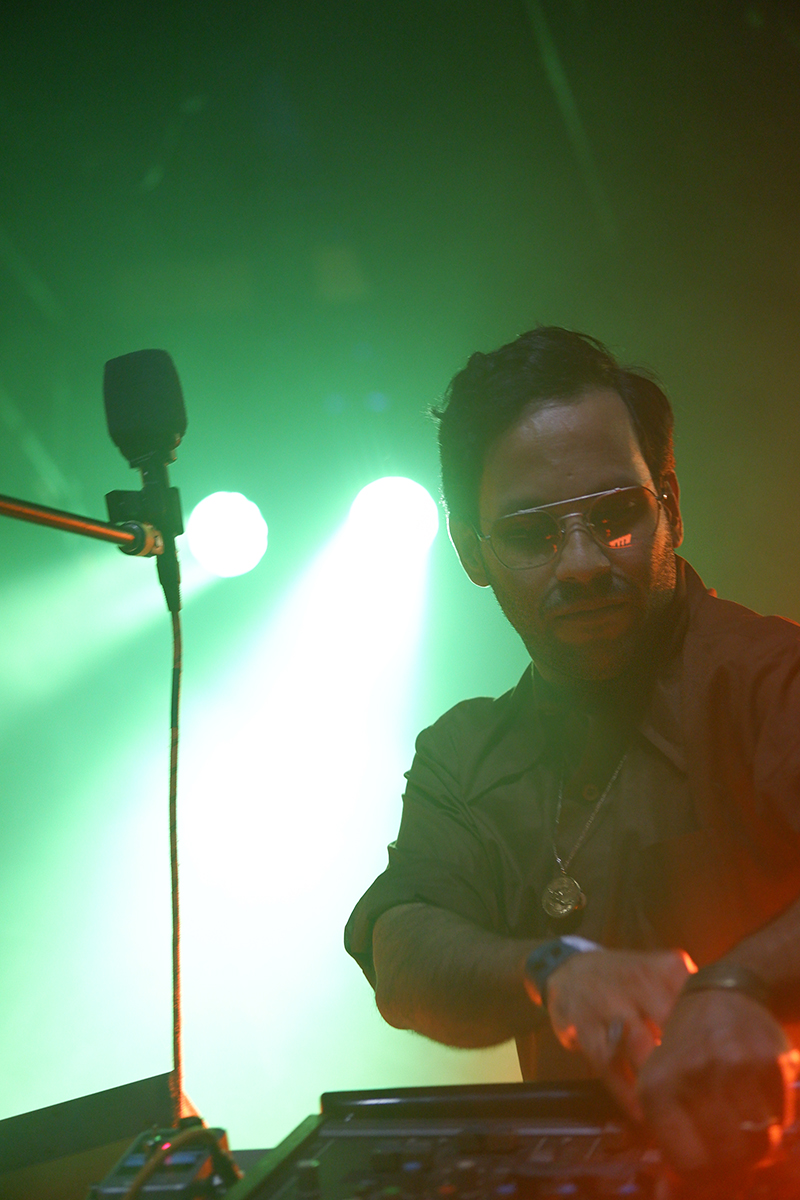 Pachy García is a self-made, self-taught, gifted instrumentalist and throughout this hour-long performance we all got a peek behind the curtain of Pachyman’s production techniques through tracks like “Destroy The Empire,” “Foundation Sound,” and “Big Energy,” to name a few. Halfway through the set, he called attention to his mixer, tilted towards the audience: “This is my mixer and all of the music goes through here, and in there are real drums, bass, and guitars and so on. I played and recorded all these instruments myself” García told the crowd as a way to bring them in closer to the music.
