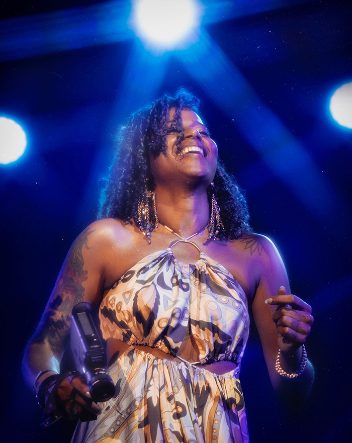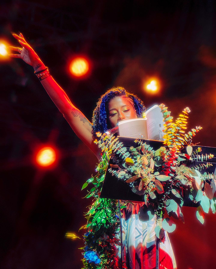 Poet Aja Monet started it off with a captivating reading of a selection of her poems. Accompanied by dreamy background music and backup vocals, she brings a new understanding of what poetry can be. Her poems bridged the gap between emotional and uplifting, and her set was the perfect complement to Vic’s more high-energy performance. The friendship between the two performers was clear, as Vic was visible watching Aja from backstage while she performed, before coming to join her for a duet.